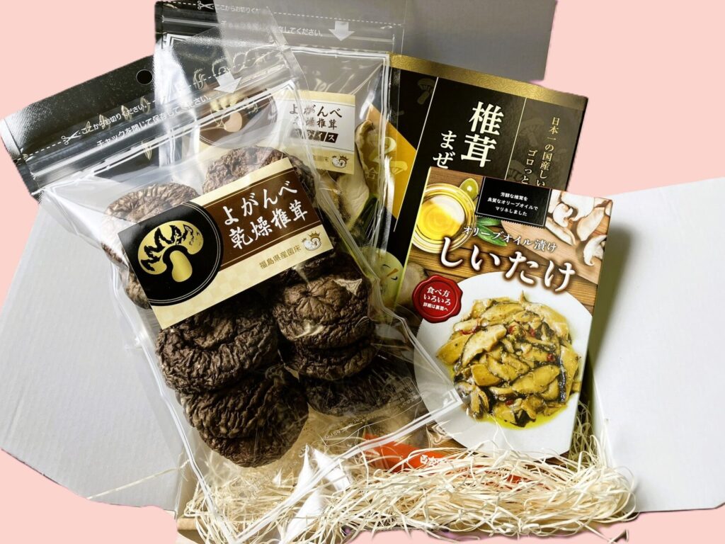 西会津しいたけファーム自慢の美味しい生椎茸の旨味を凝縮した乾燥しいたけ各種をはじめ、フレンチシェフ考案の「オリーブオイル漬けしいたけ」や、肉厚椎茸がゴロゴロ入った、混ぜるだけ簡単!「椎茸混ぜご飯の素2合用」など、人気の商品をセットにしました。