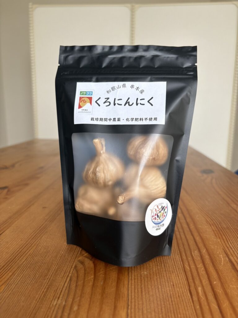 この産品は「障害者が生産行程に携わった食品の日本農林規格(JAS)」に基づき認証を受けた事業者によって、規格に適合するように管理・生産されています。○黒にんにく 四国の平戸にんにくを種から育て収穫したニンニクを2週間乾燥させ、その後10日~14日ほど専用の釜で熟成させ作っています。始めて食べた方は『これがにんにく!?』と驚かれるほど甘くて美味しい健康食品です。