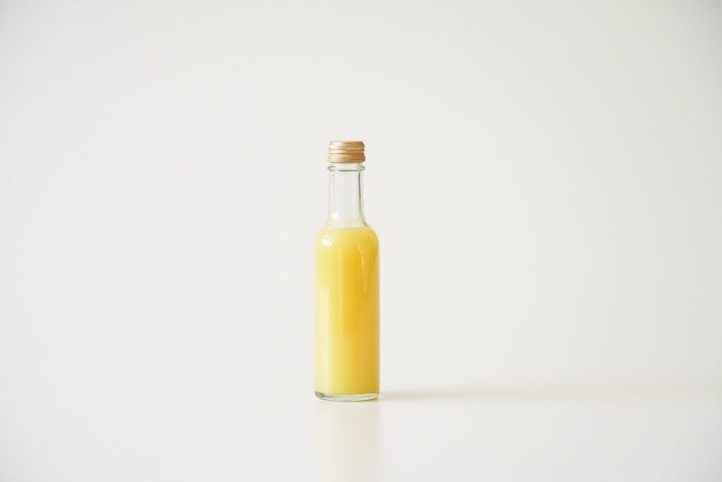 私たちのレモン果汁は、レモンをそのまま圧搾して絞ったストレート果汁。近年では、中の実だけくり抜いたものを搾汁する方法もあるが、今回は外皮も一緒に圧搾する方法を採用した。それは、レモン全体を感じて欲しいというささやかな私たちの願いが込められている。外皮には香りの主成分が豊富で、乳白色になっているのがその証。香りと苦みの複雑味が特徴の香料無添加のストレート・レモン果汁!
