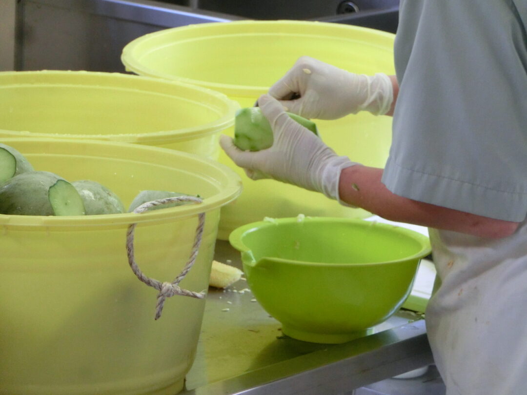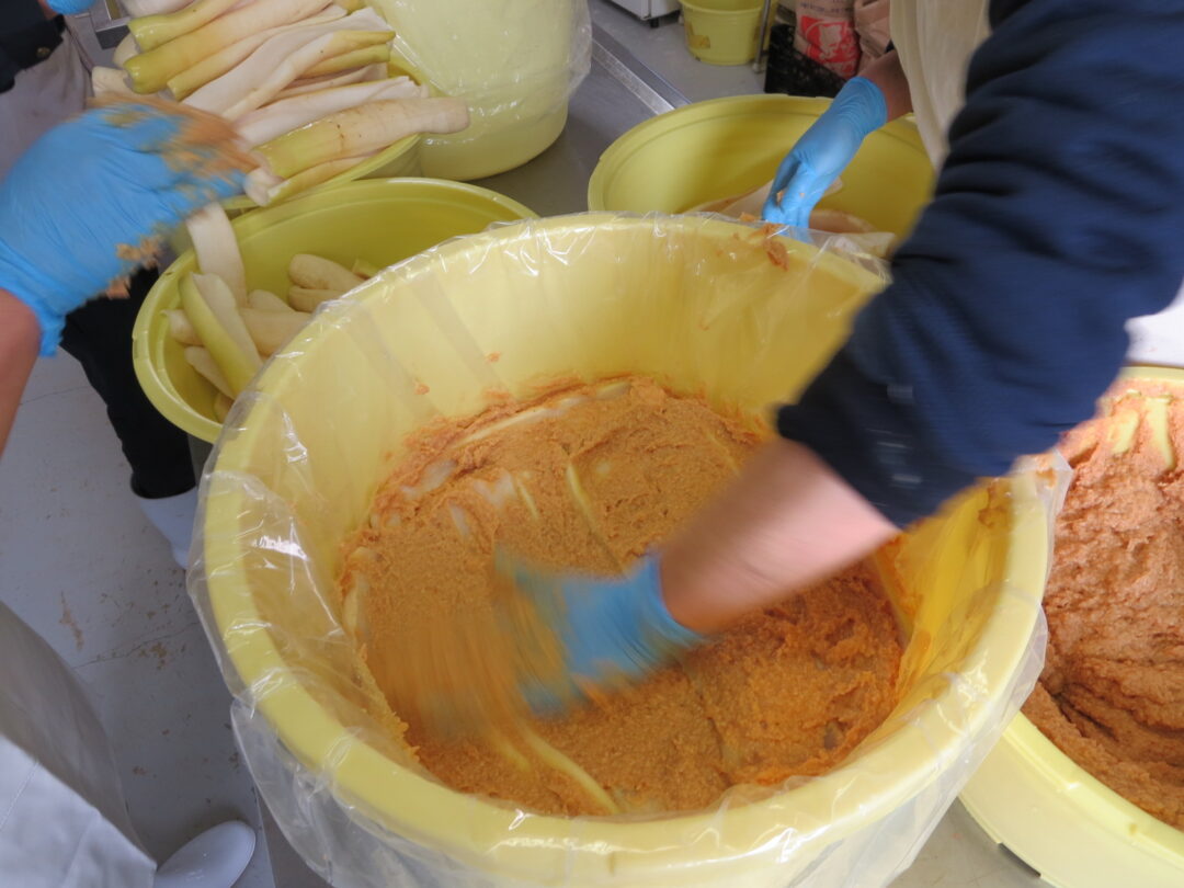 この豊かな自然と農産物に恵まれた月形町で、サトニクラス酵房は2014年に開設しました。事業のきっかけは、都市部で課題を抱えた若者たちを支援するために、農作業を通じた就労訓練を始めたことです。2012年には、若者たちを雇用するためにNPO法人を立ち上げ、漬物の製造販売を開始しました。その後、漬物造りの事業と若者の雇用の継続を図るため、障害福祉サービスを開始しました。サトニクラス酵房は、地域農業の6次産業化の担い手として、地元の高齢者から教わった方法で地元の農産物を加工し、漬物や味噌などの発酵食品や保存食を製造しています。